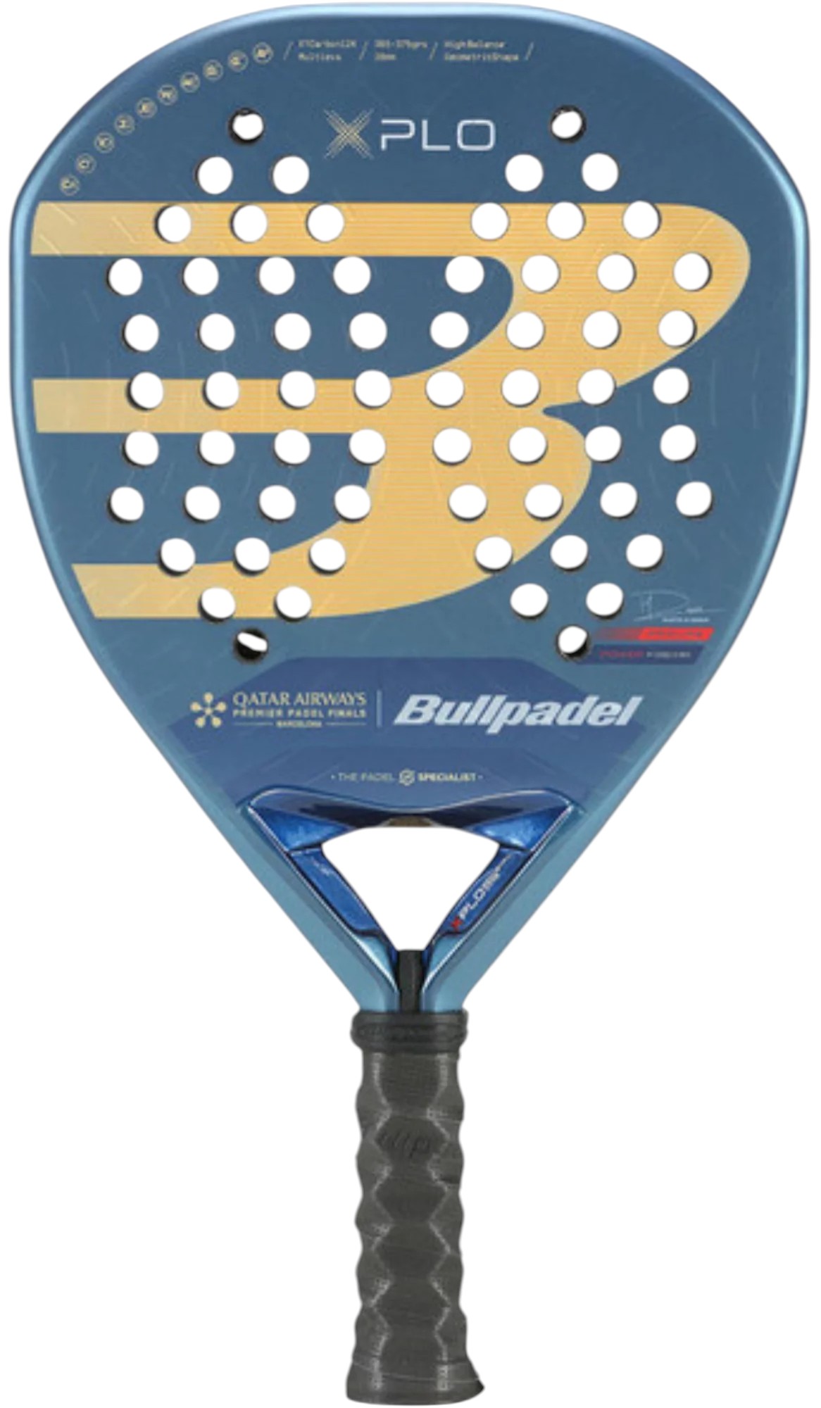 Perfect your game with the Bullpadel XPLO 25 – Limited Edition Premier Padel Final Edition, crafted for advanced players seeking ultimate power and precision. Designed for elite athletes, this racket delivers explosive power with its unique Geometric head shape and high balance, making it the perfect weapon for aggressive players who dominate the court. Comes with a full presentation case.